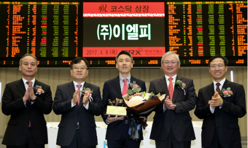 이엘피, 삼성디스플레이 납품 힘입어 코스닥 상장 첫 날 선방 공모가보다 12% 올라...삼성디스플레이에 OLED 패널검사기 독점 공급 비지니스포스트 2017.04.06 ▲ 이재혁 이엘피 대표이사(가운데)가 6일 한국거래소 서울사옥에서 이엘피의 코스닥 상장을 기념하는 사진을 찍고 있다...