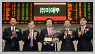 미애부, 코넥스 신규상장 기념식 2015.12.08 한국거래소는 8일 서울사옥 홍보관에서 화장품 도매업체인 미애부의 코넥스시장 신규상장 기념식을 개최했다.한국IR협의회 강홍기 부회장(왼쪽부터), 한국거래소 코스닥시장위원회 김재준 위원장, 미애부 김기수 대표이사, 코넥스협회 김군호 회장, 한양증권 정해영 대표...