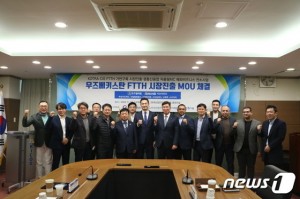 무송지오씨(주)(대표 박인철)는 우즈베키스탄 국영통신업체인 우즈텔레콤과 우즈베키스탄 FTTH(가구내 광가입자망)사업 공동진출을 위한 MOU를 체결했다고 15일 밝혔다. 한국산업단지공단 광주지역본부에서 열린 이날 MOU에는 무송지오씨와 우즈텔레콤을 비롯해 무송지오씨 현지법인인 지오씨우즈, 타슈켄트 인하대...